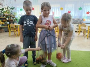 Przedszkolaki konstruowały własne wagi i dokonywały pomiaru wag zgromadzonych skarbów jesieni, liczyły, przeliczały, tworzyły zbiory i utrwalały znaki graficzne cyfr ale przede wszystkim wspaniale i wesoło się bawiły. Bo każdy przedszkolak wie, że matematyka to wspaniała zabawa.